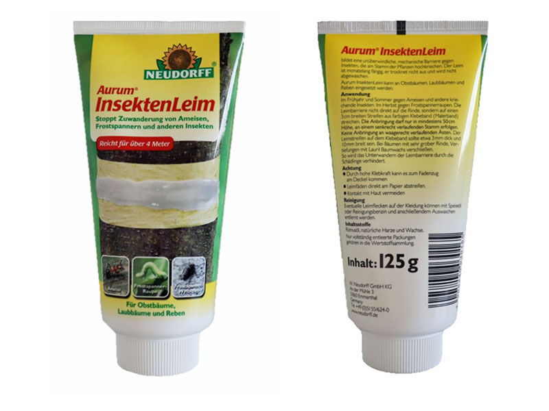 • Spezialleim zum Abfangen von Frostspanner-Weibchen und anderen Schädlingen, die an Bäumen emporkriechen.
