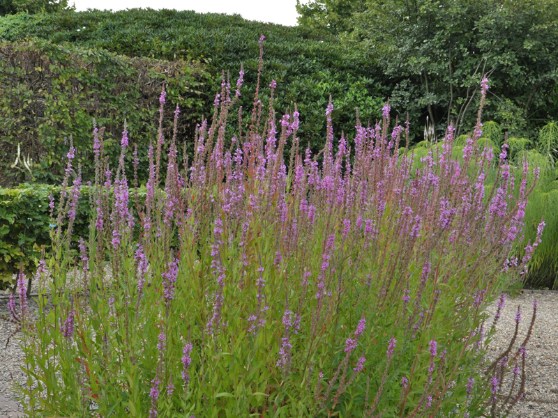 Die bis zu 120 cm hohe Wildstaude steht bevorzugt auf feuchten bis nassen Böden, die zudem auch nährstoff- und humusreich sein sollten. An einem vollsonnigen Teichrand oder einer feuchten Senke findet diese wunderschöne Pflanze ideale Bedingungen, um ihre volle Blütenpracht zu entwickeln. Leuchtend dunkelrosarot locken die schmalen Scheinähren von Juli bis September allerlei Insekten an und bieten diesen eine reichhaltige Nahrungsquelle. Im Austausch für diese Blütenpracht empfiehlt es sich, dem Blutweiderich einmal im Jahr eine kräftige Dünung mit Kompost zukommen zu lassen, um ein kräftiges Wachstum zu garantieren. Mit lästigen Schädlingen hat der gemeine Blutweiderich auch keine Probleme, denn die natürlich enthaltenen ätherischen Öle machen es jedem Plagegeist schwer, weshalb er meist gemieden wird. Im Mittelalter war Lythrum eine sehr geschätzte Heilpflanze, deren wertvolle Inhaltsstoffe gegen Durchfallkrankheiten, bei Hautproblemen und zur Senkung des Blutzuckerspiegels eingesetzt wurden.
