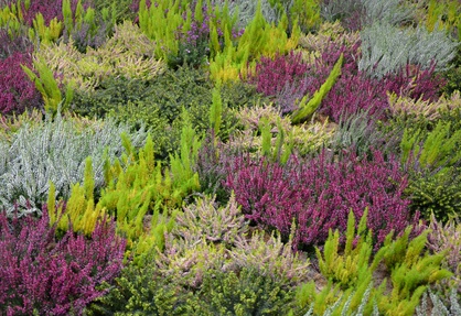 Ganz speziell ist unsere Kategorie für das Heidebeet. Hier finden sich Bodendecker wie Calluna und Erica wieder, die speziell für Moorbeete geeignet sind. Sie gelten als die Begleitpflanzen für Rhododendren schlechthin. Dabei kommen die Bodendecker auch ganz gut alleine klar und oftmals umso besser zur Geltung, wenn sie nicht von den großen Rhododendren überschattet werden. Die Pflanzen, die so schöne Namen wie 'Liliane', 'Theresa' und 'Rosann' tragen, gibt es in vielen verschiedenen Farbnuancen, die sich prächtig kombinieren lassen.