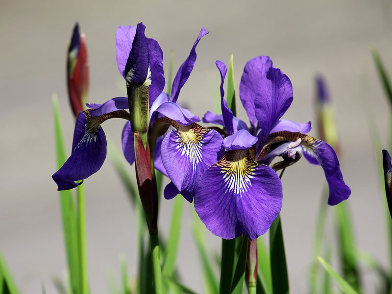 Die Iris-Arten besitzen eine auffällig schöne Blütenform in leuchtenden blauen, weißen oder gelben Farben. Die Hollandica-Sorten sind wegen ihren langen Stielen als Schnittblumen sehr geschätzt. Iris kommen am besten zur Geltung, wenn sie in kleineren Gruppen mit anderen Frühjahrsblühern zusammen gepflanzt werden. Auch zwischen Rosensträuchern machen Schwertlilien eine gute Figur. Schwertlilien entwickeln sich am besten auf einem humosen, durchlässigen und neutralen bis alkalischen Boden in sonniger bis halbschattiger Lage. Staunässe sollten Sie bei Iris unbedingt vermeiden.