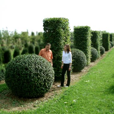 Ligusterkugeln finden ihren Einsatz zum Beispiel als optischer Abschluss von Sitzterrassen, als beeindruckendes alleinstehendes Solitärgehölz oder sie werden in Gruppen von unterschiedlich großen Kugeln als Ensemble präsentiert.