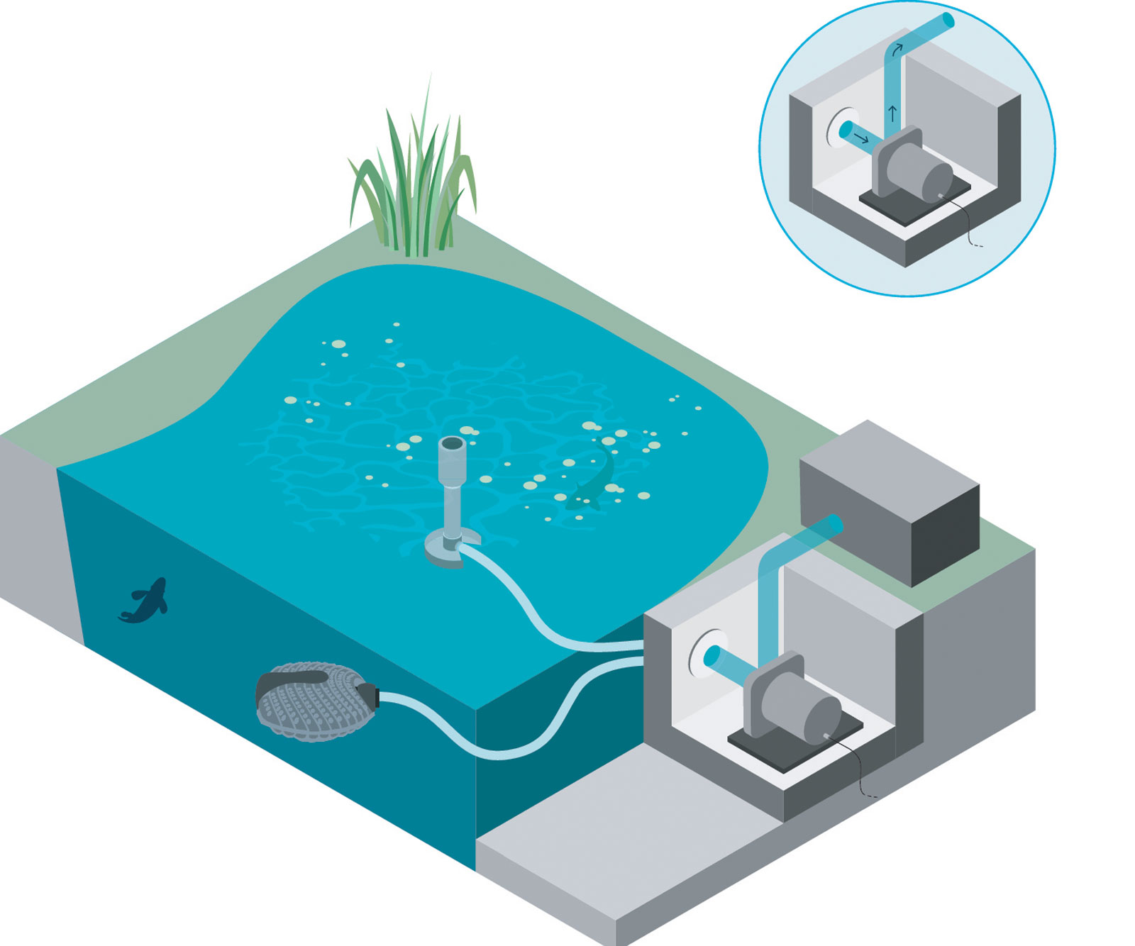 Die bewährte OASE-Pumpe Aquamax gibt es nun auch speziell für die Trockenaufstellung. Diese leistungsstarke Bachlauf- und Filterpumpe ist dabei besonders klein und dadurch platzsparend. Durch den stabilen Standfuß lässt sie sich außerhalb des Teiches, aber unterhalb des Wasserspiegels (!), sicher trocken installieren. Auch diese Aquamax-Pumpe ist in der Lage, bis zu 8 mm große Schmutzpartikel (wie z.B. Koi-Kot) oder abgestorbene Pflanzenteile zu befördern.