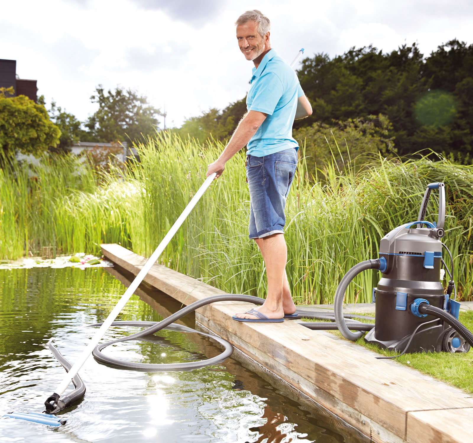 Filtersysteme und biologische Maßnahmen machen zwar das Wasser Ihres Gartenteiches sauber und klar, sie vermeiden aber nicht, dass sich der Eintrag von allerlei Schmutz, Blätter, Rasenschnitt, Fischkot usw. auf den Teichgrund absenkt und dieser mehr und mehr verschmutzt. Ein Schlammsauger schafft Abhilfe. Mühelos saugt er grobe Schmutzpartikel wie Schlamm und abgestorbene Pflanzen vom Teichgrund an und entfernt den unerwünschten Dreck. Darüber hinaus lassen sich diese Geräte auch als Nasssauger im Haushalt einsetzen. Ein Teichsauger hat jedoch keine Filterfunktion. Dies bedeutet, dass er mit dem abgesaugten Schlamm auch mehr oder weniger viel Wasser ansaugt. Diese Wassermenge hängt von Ihrer persönlichen Geschicklichkeit beim Absaugen ab. Angesaugter Schlamm und Wasser werden entweder über eine im Sauger enthaltene Speicherkammer geführt und anschließend von dort über einen Ablaufschlauch in den Gulli oder ein Gartenbeet entsorgt. Oder dieser Vorgang vollzieht sich, je nach Produkteigenschaft, direkt und ohne zwischengeschaltete Speicherkammer.
