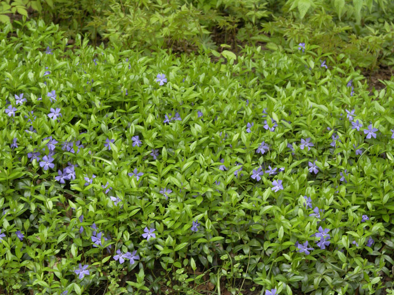 In einer Höhe von bis zu 15 cm erstreckt sich der Wuchs des kleinen Immergrüns. Es will nicht hoch hinaus, sondern wächst kriechend und bildet dichte Matten im Garten. Eine einzelne Pflanze kann eine Breite von bis zu 30 cm erreichen, dadurch lassen sich mit der Vinca Minor auch große Flächen begrünen. Für einen Quadratmeter flächige Bepflanzung werden zwischen 9 und 12 Pflanzen des Immergrüns empfohlen. Durch seinen starken, gut verzweigten und dichten Wuchs lässt es dem Unkraut keine Chance sich in seinem Gebiet niederzulassen. Eine Besonderheit dieser Pflanze ist, dass die Vinca minor oberirdische Ausläufer in Form langer Triebe bildet, an deren zahlreichen Blattknoten sich Wurzeln ausbilden. Durch sie wächst das Immergrün schnell und effizient, so brauchen Sie sich bei der Vinca minor keine Sorgen um schlechte Anwachsergebnisse zu machen.